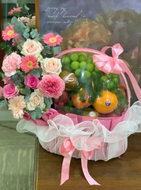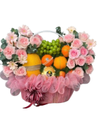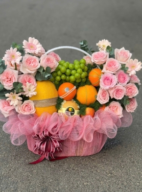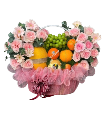 Giỏ Hoa Trái Cây Tone Hồng Siêu Đáng Yêu