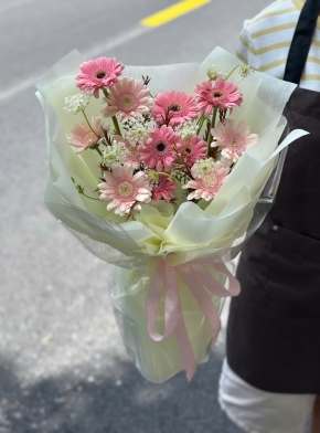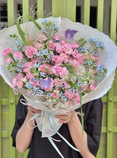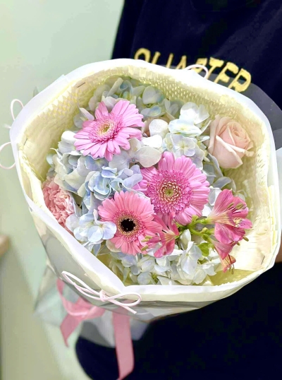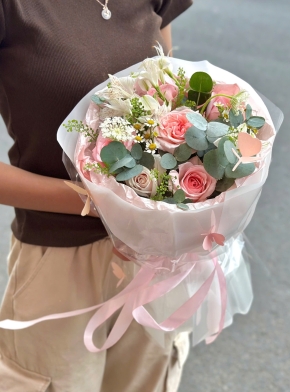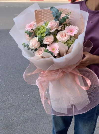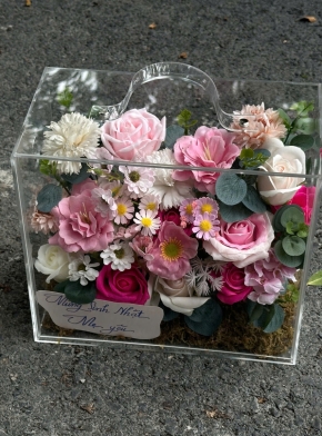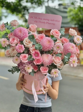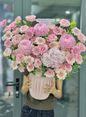 Giỏ Hoa Mix Tone Hồng Pastel Cute