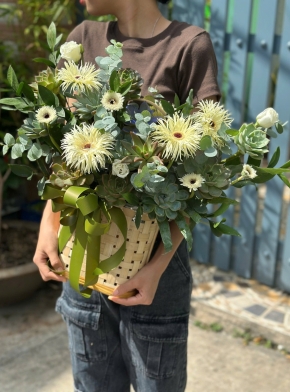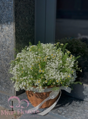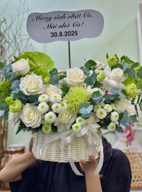 Giỏ Hoa Baby Kết Hợp Hoa Cúc Tana Trắng Tinh Khôi