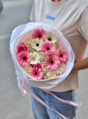 Giỏ Hoa Hồng Mix Đồng Tiền Ngọt Ngào và Tươi Tắn