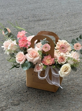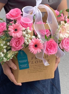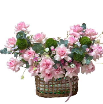 Giỏ Hoa Mix Tone Hồng Pastel Siêu Ngọt Ngào