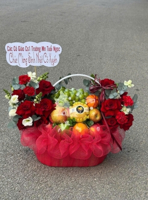 Giỏ Hoa Trái Cây Tone Đỏ Sang Trọng