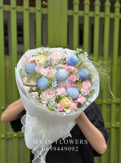 Bó Hoa Mix Tone Xanh Bầu Trời