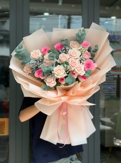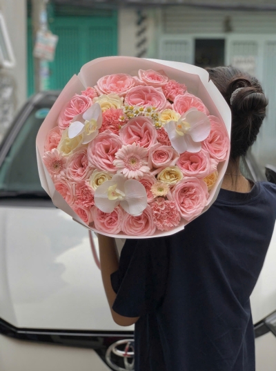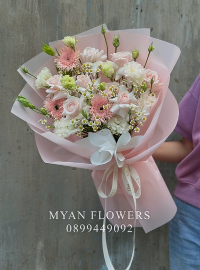 Bó Hoa mix tone hồng kiểu nhẹ nhàng