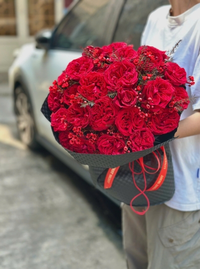 Bó Hoa Tone Đỏ Kiểu bó tròn