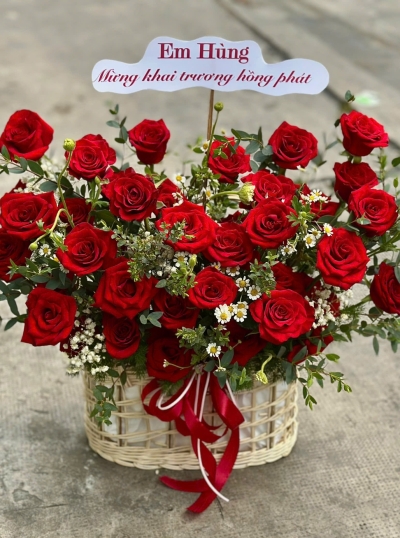 Giỏ Hoa Tone Đỏ Sang Trọng Và Tinh Tế