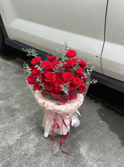 Bó Hoa 20 Bông Hồng Đỏ Mix Lá Bạc Sang Trọng