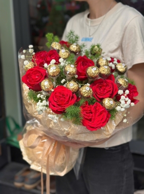 Bó Hoa Đỏ kiểu trái tim giấy gói hồng